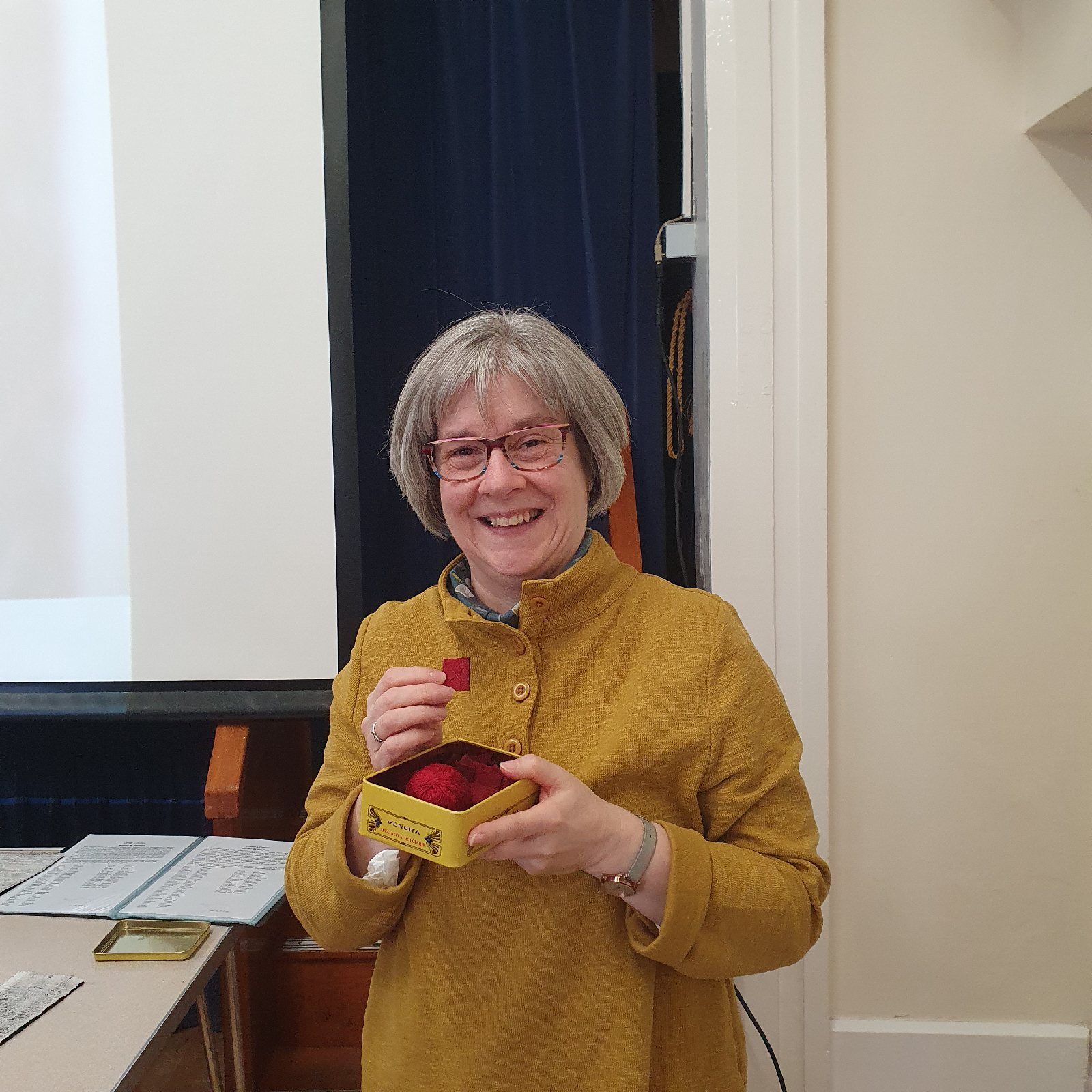 Here Bethan is holding one of her 1" quilts which will be joined with others to make her next piece